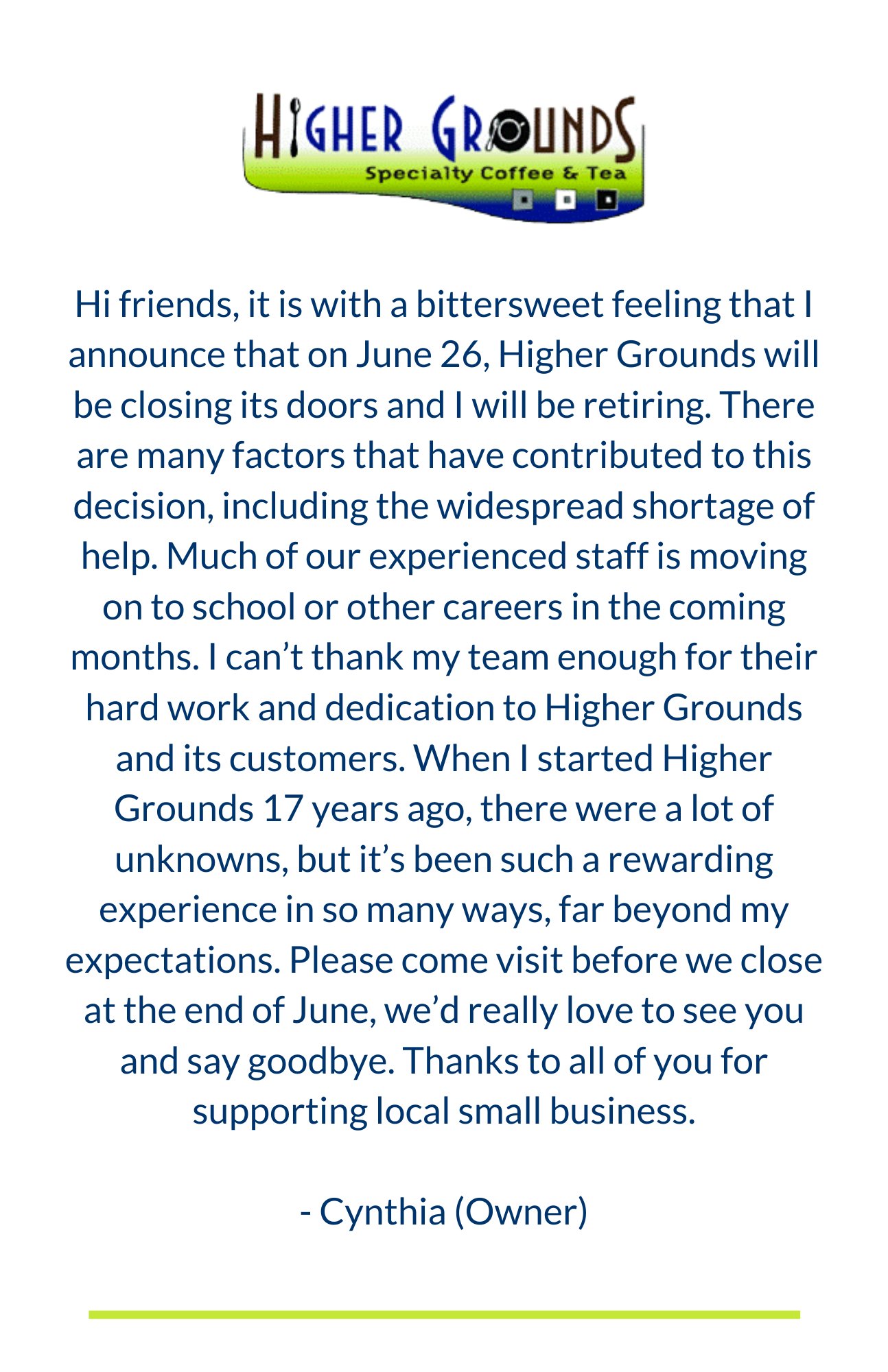Frequently Asked Questions about Higher Grounds Coffee. No I love this coffee shop because it is located along the highway at the exact spot that my mother and I are.