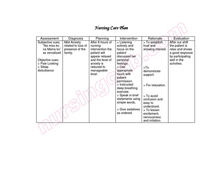 Nursing Care Plan Mild Anxiety Pdf