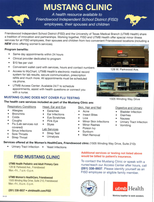 Friendswood Isd Staff And Family Clinic Mustang Clinic